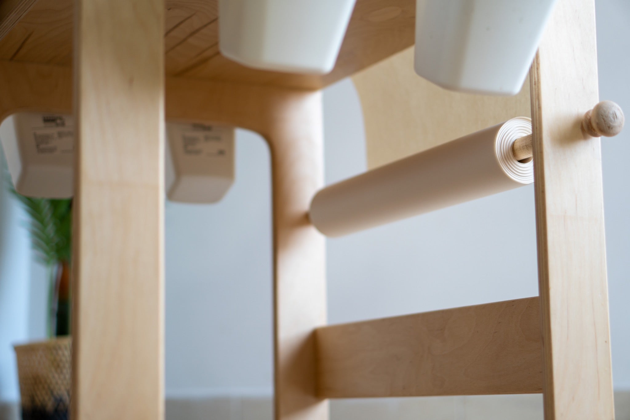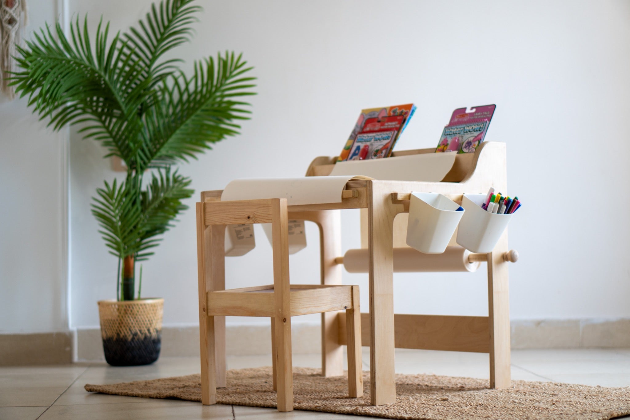 The Creative Station/Desk is the perfect solution for children who love to color/draw, and for those who also need a space to work, study online. With everything in one place and easily accessible to the child, and with a paper roll attached, your child will be able to independently grab their colors and their coloring books and start painting away without needing anyone's help!