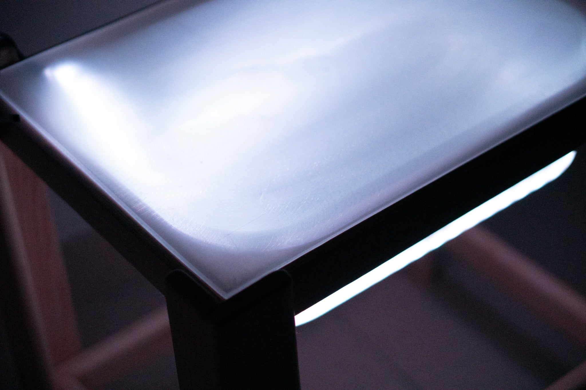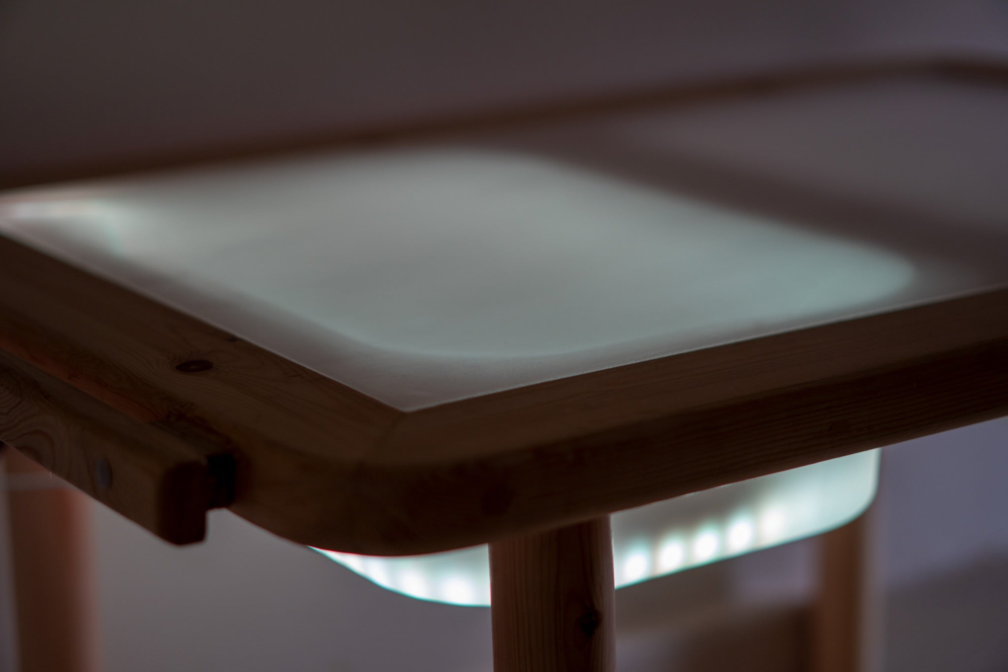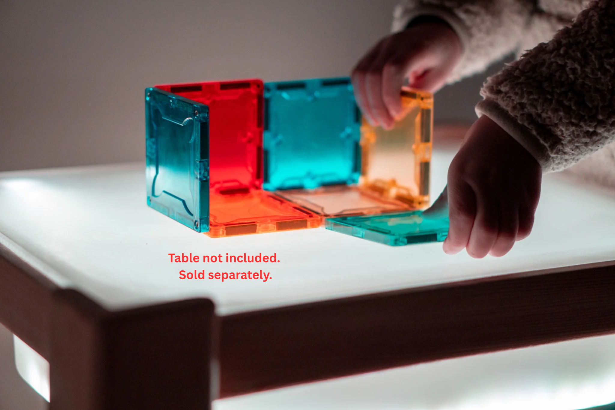 Lights are not included, but can be purchased through Amazon. They are placed in the box and connected to a power source. Children can then play, paint or draw with whiteboard markers on the surface of the table, which can be either wiped clean or washed with water and soap.