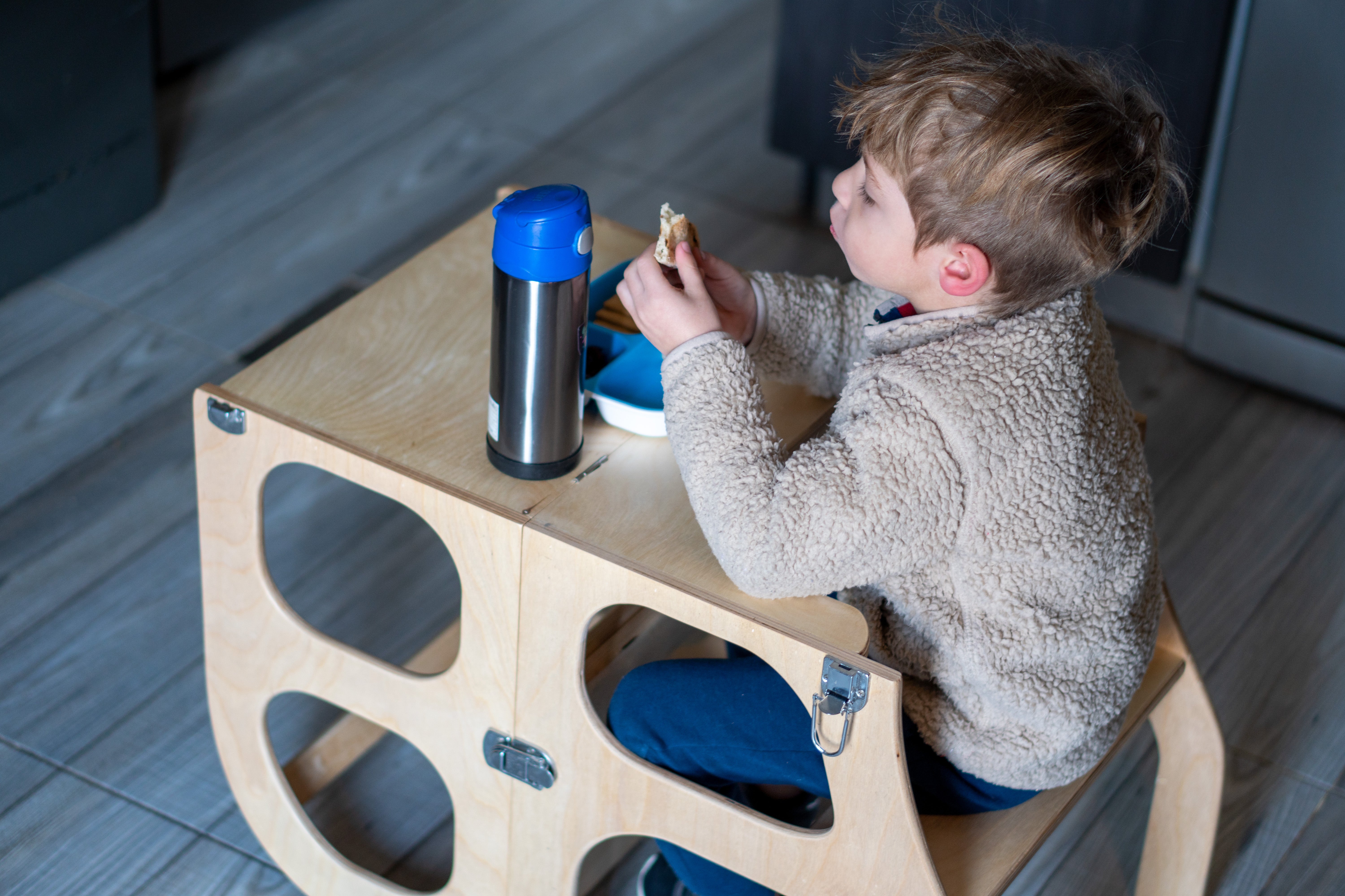 The Montessori Starter Bundle is designed to create an environment where your child can independently explore and learn. This bundle includes the Single Desk Learning Tower, which doubles as a desk and chair for versatile use, and the Montessori Bookshelves, perfect for promoting independent reading and organizing books. Together, these items support a Montessori-inspired lifestyle, encouraging hands-on learning and organization while being functional and aesthetically pleasing