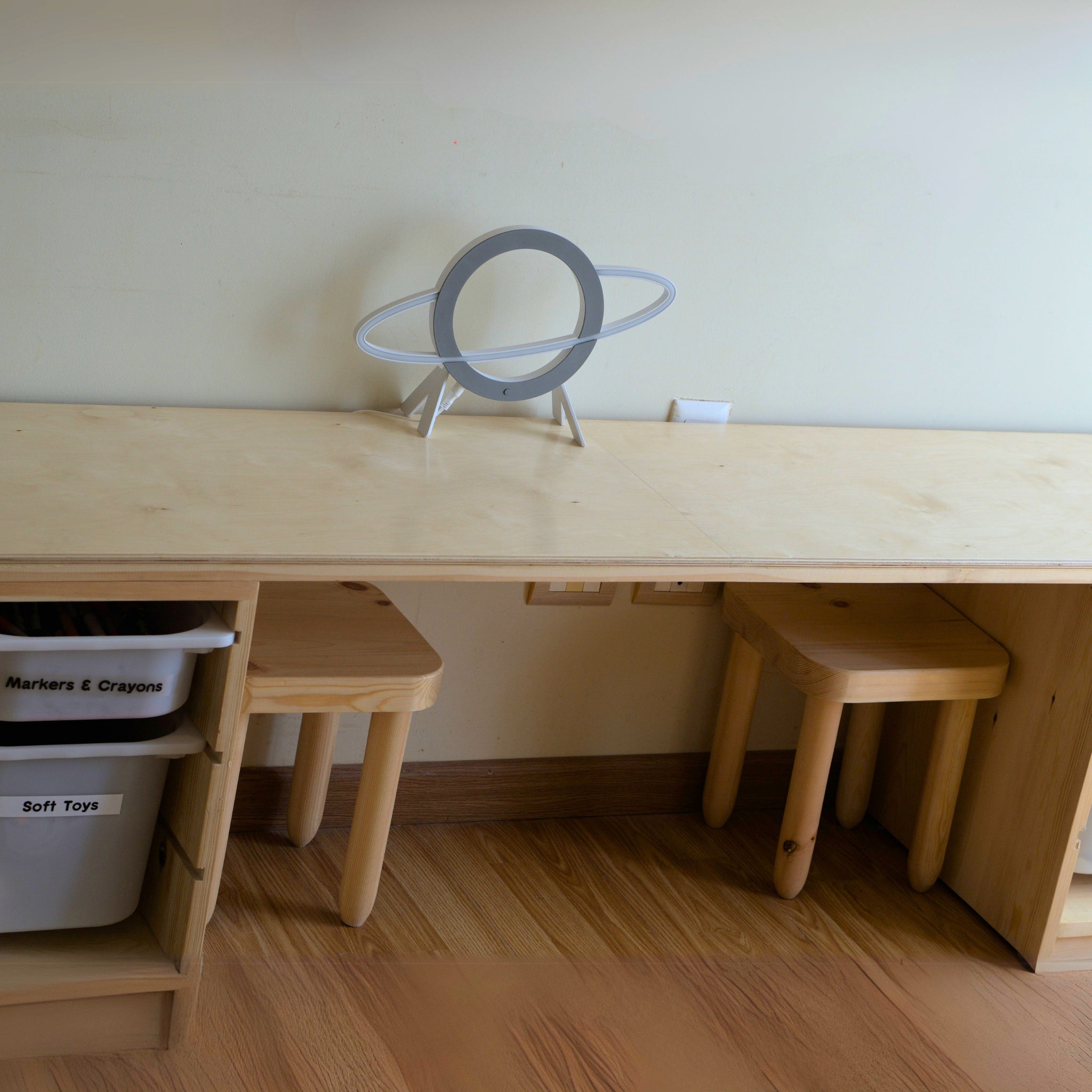 • Seamlessly fits atop the two Toy Storage Units to create a functional workspace
